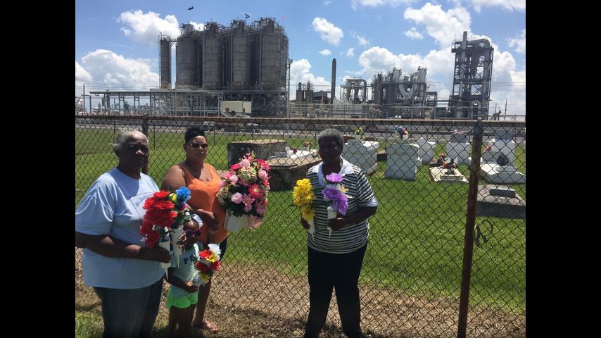 The family recently filed a restraining order against the chemical plant to prevent them from blocking their entrance to the cemetery. The long-standing legal battle goes back eight years when the family sued. The plant enclosed the parish road that they used to use to access the cemetery. Since then, they've had to call plant security to unlock the gates when they arrive. Recently, the plant stopped letting them drive through the second set of gates, preventing elderly relatives like Kelly from being able to pay her proper respects.