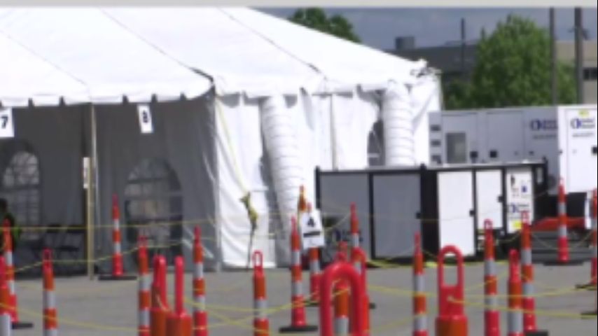 Some of the site's tents fell and shortly after 8 a.m., officials told WBRZ's Rae'ven Jackson that they were waiting for a vendor to arrive and help them get the tents back up.