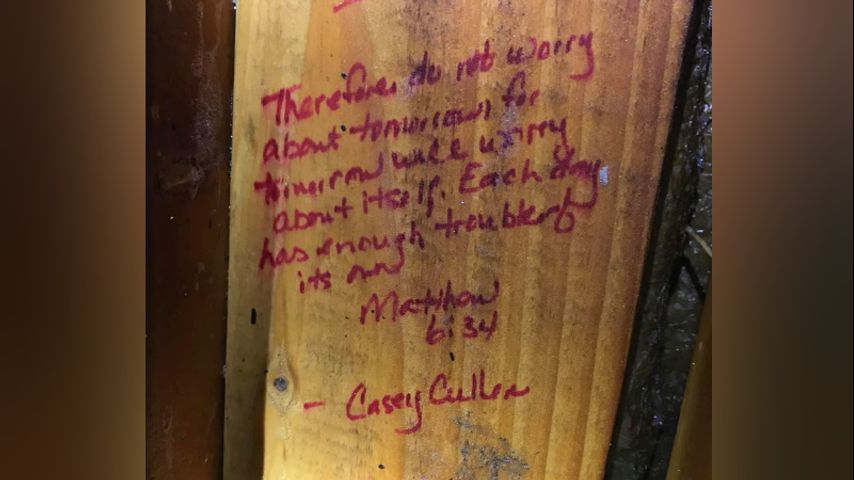 The home was a total loss, but in a Facebook post firefighters noted that numerous Bible verses written on wall studs throughout the house were not damaged.