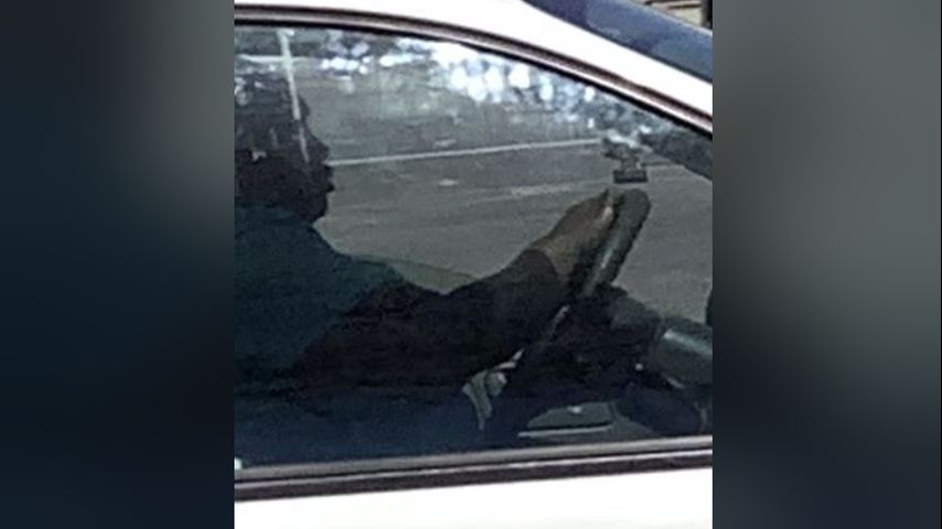 Police are also searching for Taylor's accomplice, pictured in the red shirt, and the driver of the older model white Dodge Caravan the trio drove away in.