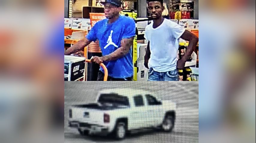 Officials say the suspects fled in a white 4-door Chevrolet Silverado after the theft.