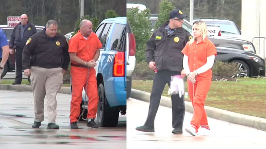LIVINGSTON - A disgraced former Livingston Parish sheriff's deputy and teacher were both escorted into the Livingston Parish Courthouse Wednesday clad in prison orange.