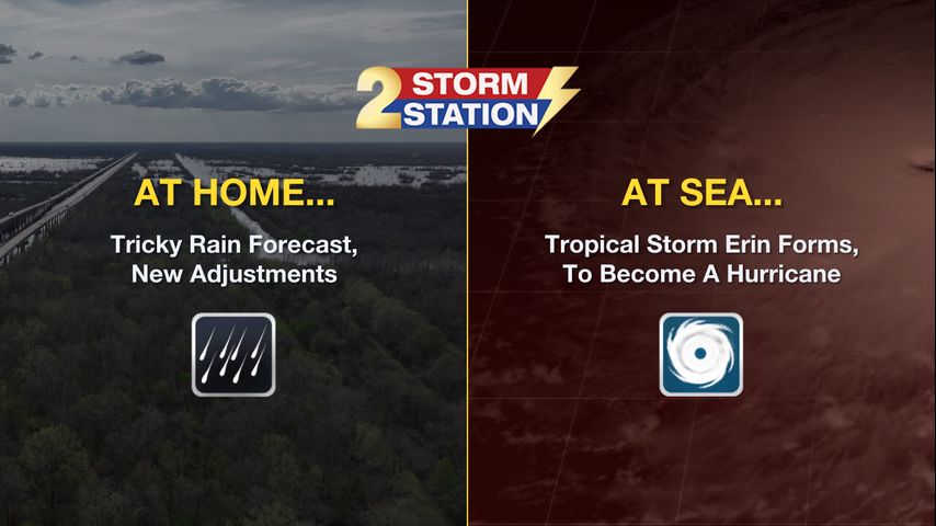 Even with tropical moisture in place, other factors have limited the number of storms lately. The latest Storm Station forecast takes this into account. Meanwhile, Tropical Storm Erin has formed in the Atlantic and will become a hurricane later in the week.