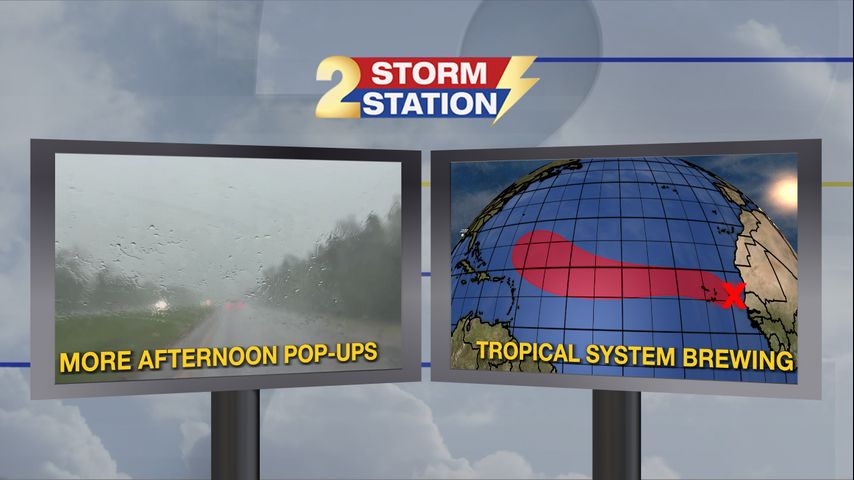 Sunday PM Forecast: Storms igniting each afternoon, system organizing in the tropics