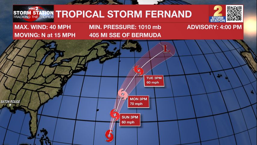 Tropical Storm Fernand has formed south of the island of Bermuda. It has winds of 40mph, and is moving north at 15mph. This system will pass relatively close to Bermuda, but it is not a threat to the U.S. mainland.