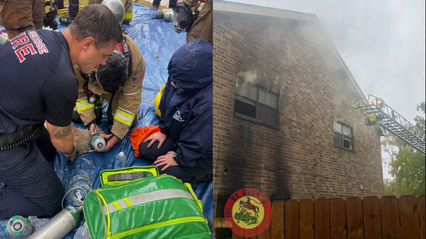 When firefighters arrived, all of the people were out but a dog was still inside. Firefighters saved the dog, which was unresponsive until treatment from a medical team.