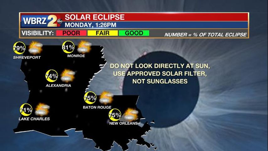 It's likely people will want to pull over to see the event around midday but DOTD asked drivers not to. In a message that should seem obvious – but probably isn't – the state suggested motorists exit interstates and busy highways to see the solar eclipse.