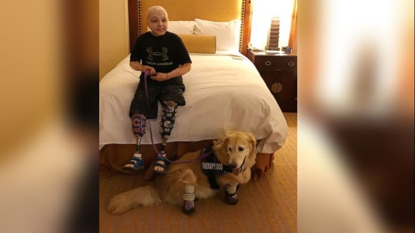 Double-amputee boy gets surprise meeting with quadruple-amputee therapy dog