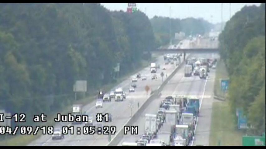 Police confirm westbound lanes of the interstate were shut down near the Juban exit sometime after 1 p.m. Monday due to downed lines in the roadway. The lanes were reopened around 1:20.
