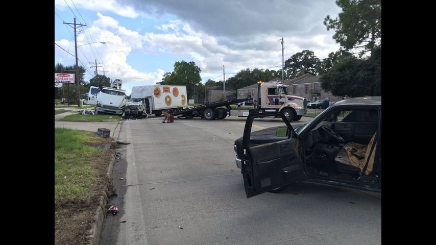 BATON ROUGE – A Department of Public Works truck was involved in a crash with injuries at the intersection of Sherwood and Red Oak Drive Monday afternoon.