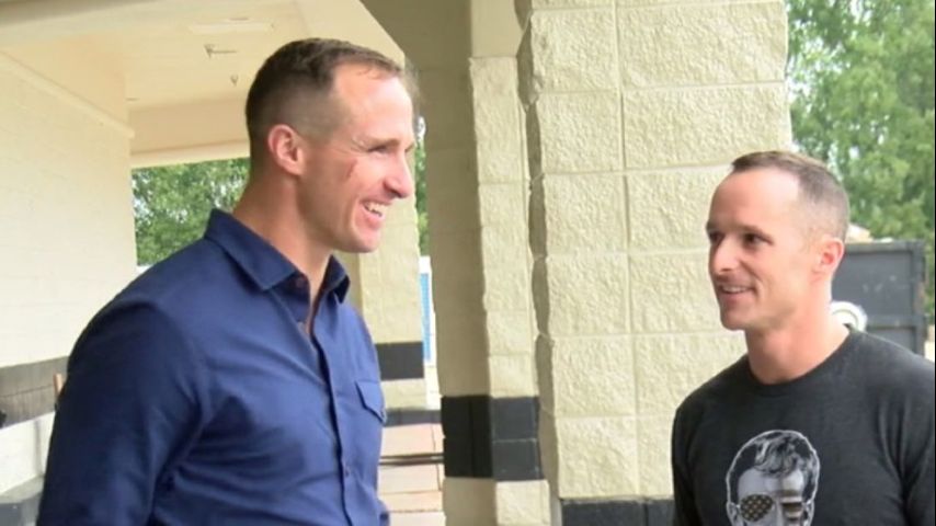 LAFAYETTE - Jeremy Hohle, a Lafayette gym owner who has an uncanny resemblance to Drew Brees, finally had the chance to meet his famous lookalike.