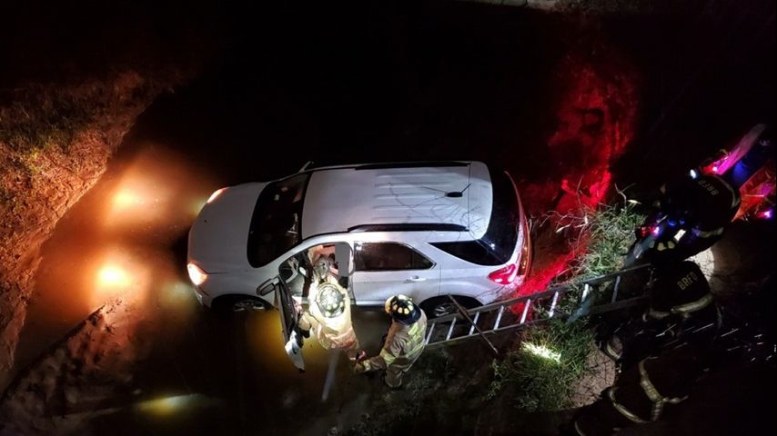BATON ROUGE - A driver and their dog were saved by firefighters Monday evening when their car slid into a canal.