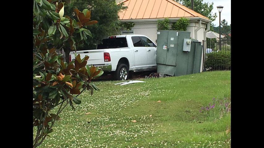 After hitting the cars, the truck slammed into an electric box and the hotel pool pump.