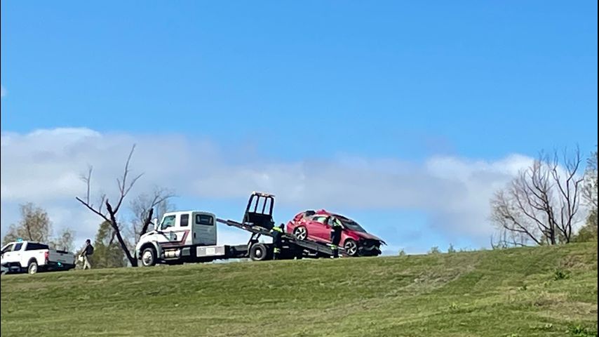 Officials say the vehicle exited the roadway and traveled up the levee. Once it reached the top of the levee it went airborne and landed at the bottom of the levee.