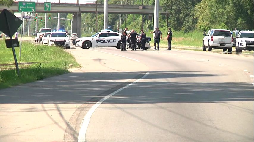 The crash happened around 10 a.m. on Scenic Highway near Blount Road. Authorities said a BRPD motorcycle officer was hit while responding to a separate crash.