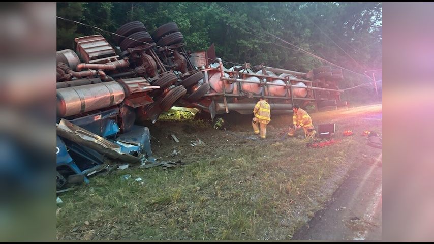 Central Mayor Wade Evans said witnesses told law enforcement that a truck going the opposite direction of the 18-wheeler crossed the center line, forcing the driver to veer off the road to avoid a head-on crash.