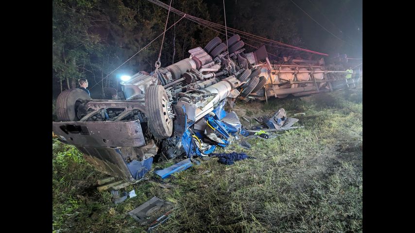 Driver freed after three hours of being stuck under overturned 18-wheeler in Central