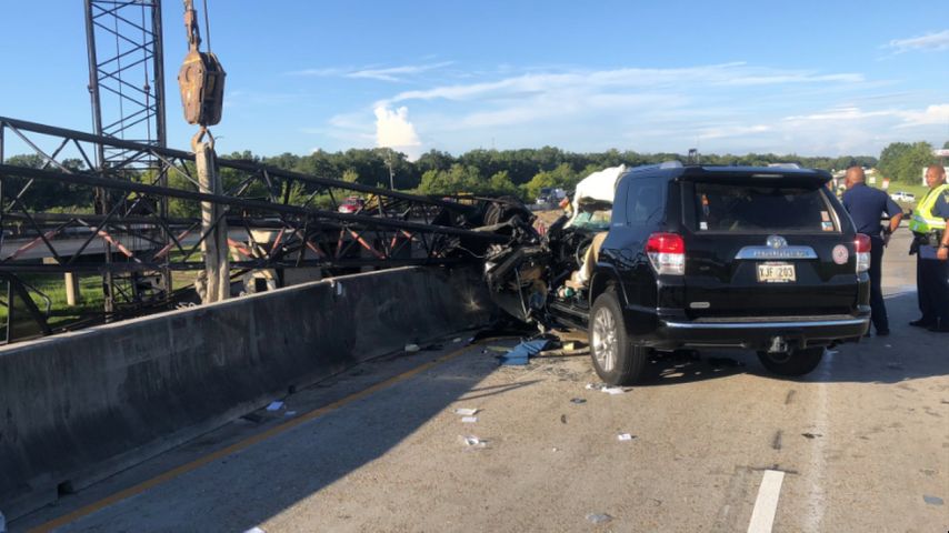 ST. MARTIN PARISH - I-10 was shut down in St. Martin Parish Tuesday morning after a construction crane collapsed onto the interstate.
