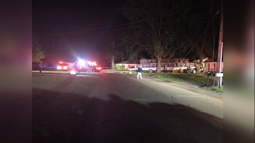 Pictures shared by WBRZ viewers and the Central Fire Department show the shocking scene: A loaded truck smashed through a home, the cab of the 18-wheeler wedged inside the house, surrounded by debris.