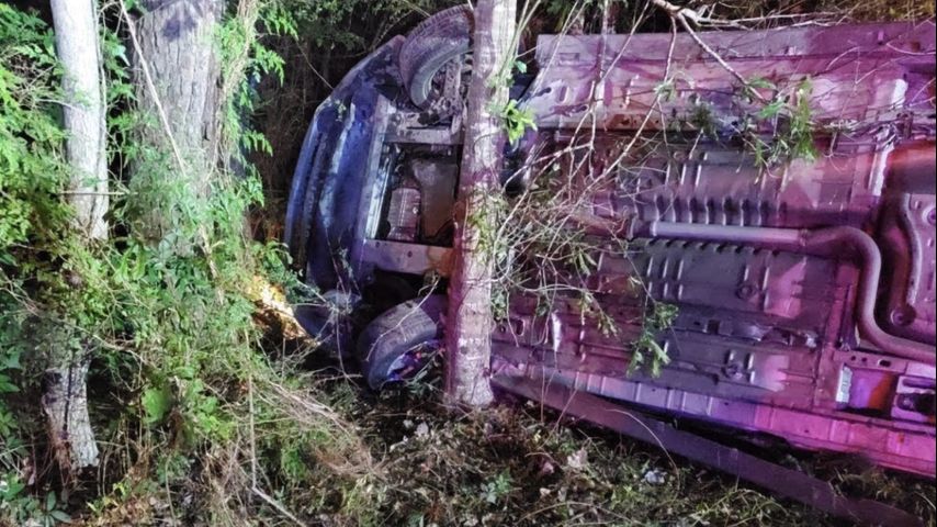 The roadway was closed in both directions between Magnolia Bridge and Magnolia Bend Roads after a vehicle overturned, ejecting its driver and leaving them pinned beneath the car around 4:30 a.m. Friday.