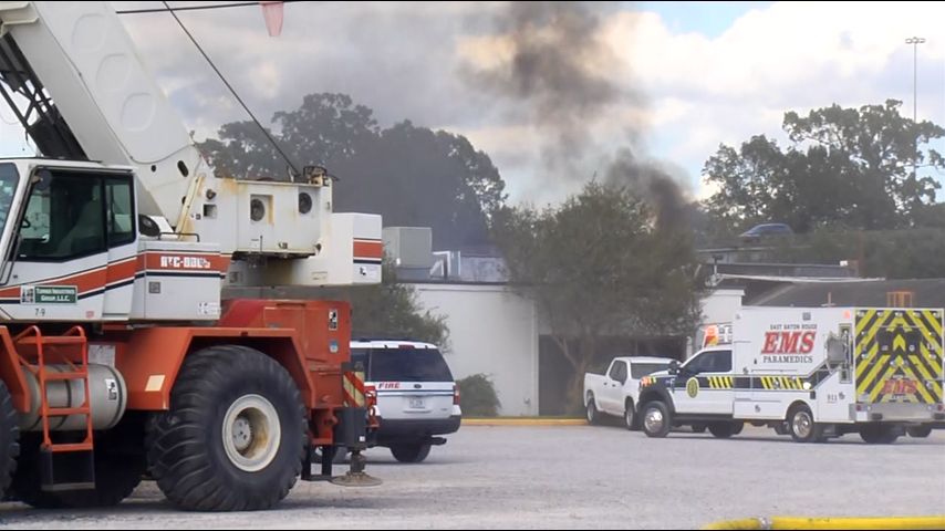 BATON ROUGE - A dump truck ran off an I-110 on-ramp and hit a transformer on a business property, sparking a fire that destroyed a nearby building.