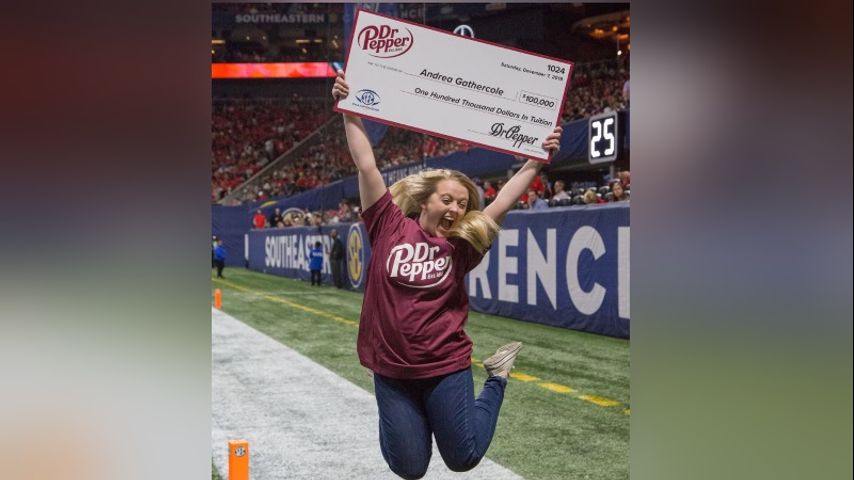 According to the Advocate, Dutchtown Alum Andrea Gathercole won $100,000 grand prize scholarship after throwing the most footballs through an oversized Dr Pepper can in 30 seconds during halftime of the SEC Championship game between LSU and Georgia.