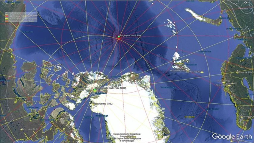 Image: The location of the Magnetic and Geomagnetic poles since 1900.