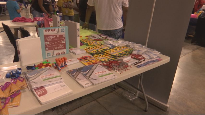 The event was held on Saturday at the River Center to help families with the hefty school supply price tags. More than 50 tables were covered in free materials for students.