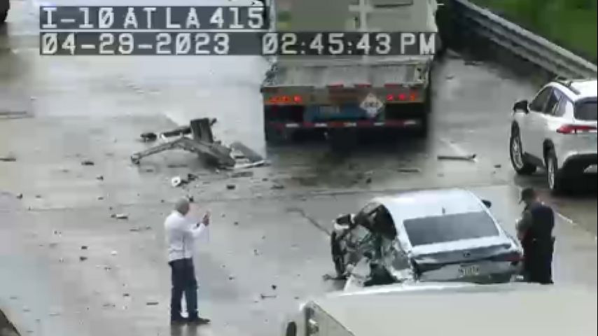 Traffic cameras in the area showed a smashed car and four stopped semi trucks in the area. The wreck happened shortly after 2:30 p.m. Traffic was flowing in the area at 4:30 p.m.