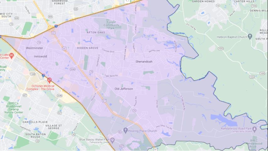 The new district's boundaries would be carved out of the existing East Baton Rouge Parish School District, starting at the I-10/I-12 split and extending eastward on I-12 and southeastward on I-10 to the Livingston and Ascension parish lines. All areas inside the triangle would part of the new district.
