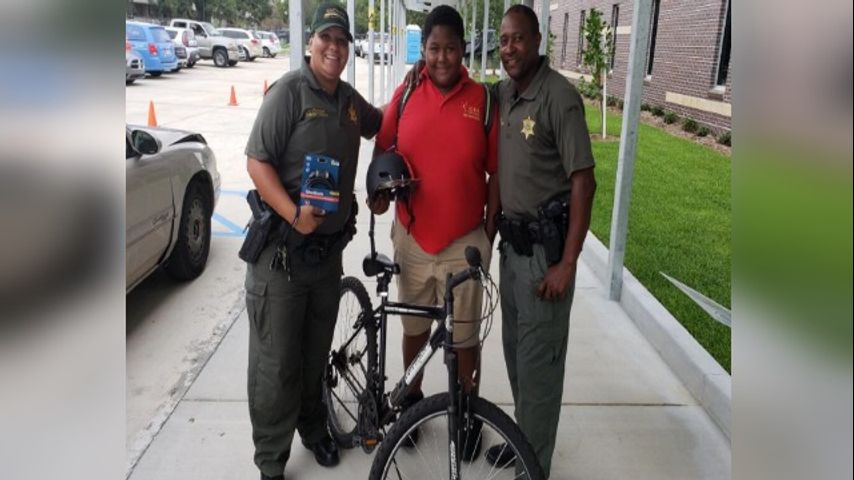 CPU Deputies Fred Kimble and Jennifer Gonzalez gifted an Innovation Idea Public School student a new bike and helmet. According to a post on social media, Naquin "Quinn" Pierson mentioned to Gonzalez that he had to walk back and forth to school because the bus stop was so far away.