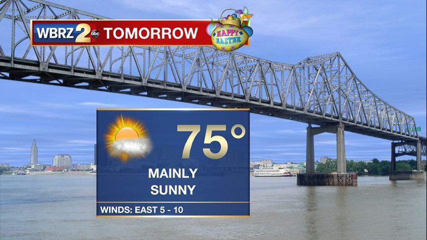 Tonight, we will continue to see a few clouds overhead. Lows won't be as chilly as they were this morning, mainly in the mid to upper 40s. Easter Sunday, expect mainly sunny skies with highs in the mid 70s. Winds will be light, out of the southeast.