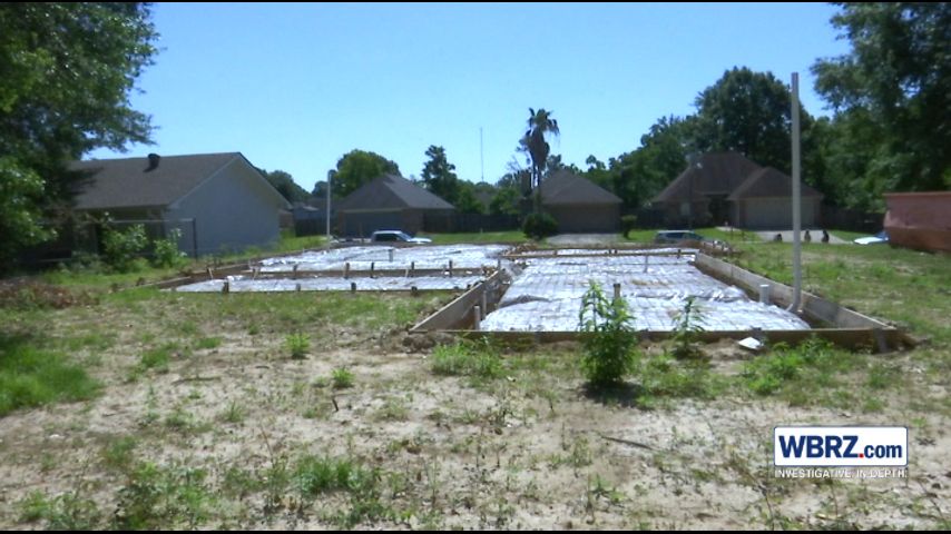 The lot on North Sabine Drive in Baton Rouge has a dumpster, plumbing, trenches, and everything in place for a concrete slab to be poured. The property has been in Glasper Pleasant's family since the 1980s. She grew up in a house right behind the lot, which is now rented out to someone else. The lot was gifted to her and her brother by their dad in 2006. It's sat empty until February, that's when she found a crew working to build a house.