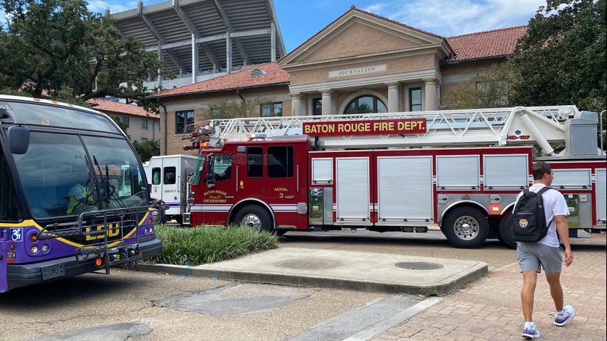 An LSU spokesperson said the electrical fire was discovered shortly before noon in the elevator control room of the Journalism building. Photos taken outside showed students filing out of the building as firefighters arrived.