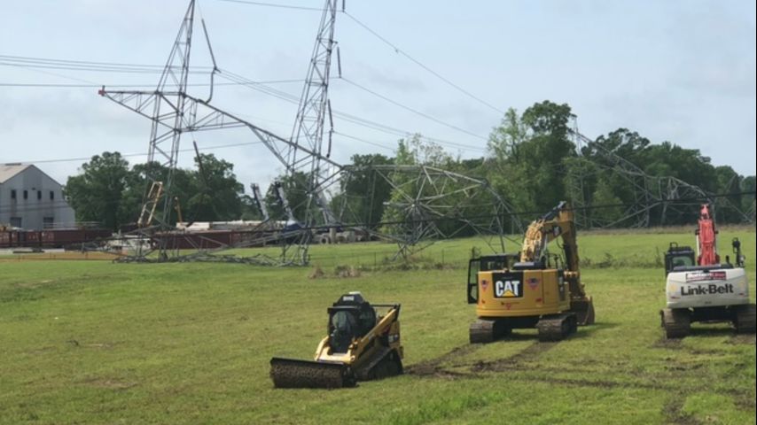 Power crews were focused, too, on the transmission lines that cross Airline Highway in southern East Baton Rouge. The lines were blown over in high winds during a storm early Saturday morning.