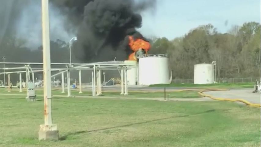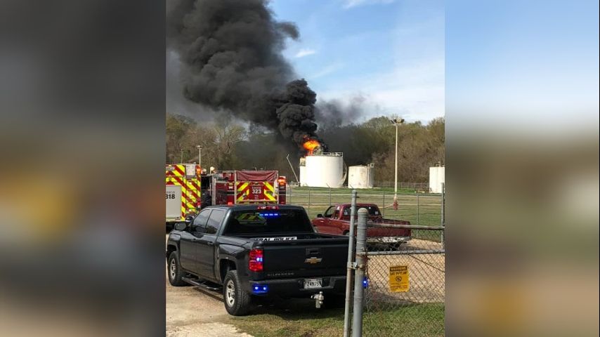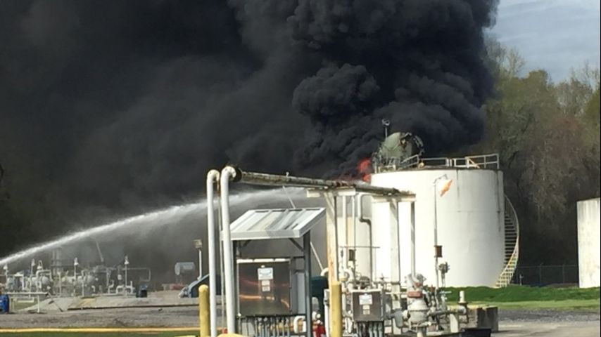 The fire was reported at a plant owned by White Marlin Midstream on Rome Drive near Evergreen Energy Company before 10 o'clock Monday morning. A worker who answered the business' phone said the burning tank was used to hold water.