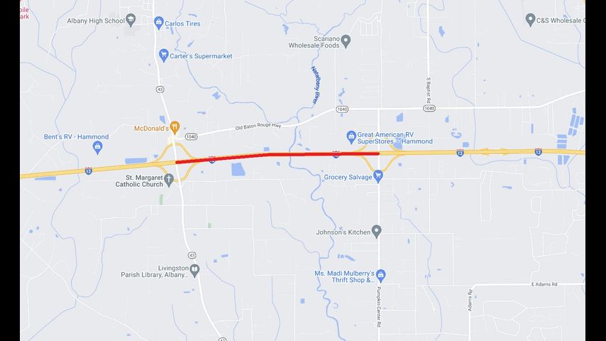 Traffic on the highway will be limited starting at 8 p.m. from LA 43, the Albany exit, to LA 1249, the Baptist Pumpkin Center exit. Officials hope to restore normal access by midnight.