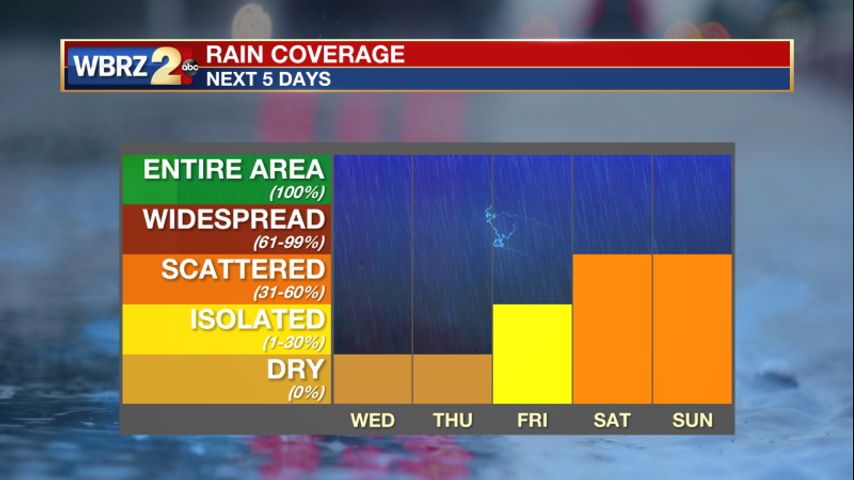 Up Next: Temperatures in the afternoon will continue to warm up little by little every day until the next rain system moves through. The clear skies will continue as well. Friday is looking mostly dry until a front starts to spark up rain in the late evening hours. That rain will move west to east over south Louisiana overnight into the morning hours of Saturday. Right now, the timing of the front is showing most of the rain clearing up by the afternoon hours on Saturday. A few showers will be possible on Sunday as well with high temperatures dropping into the 50s. Click here to see the 7-day forecast.