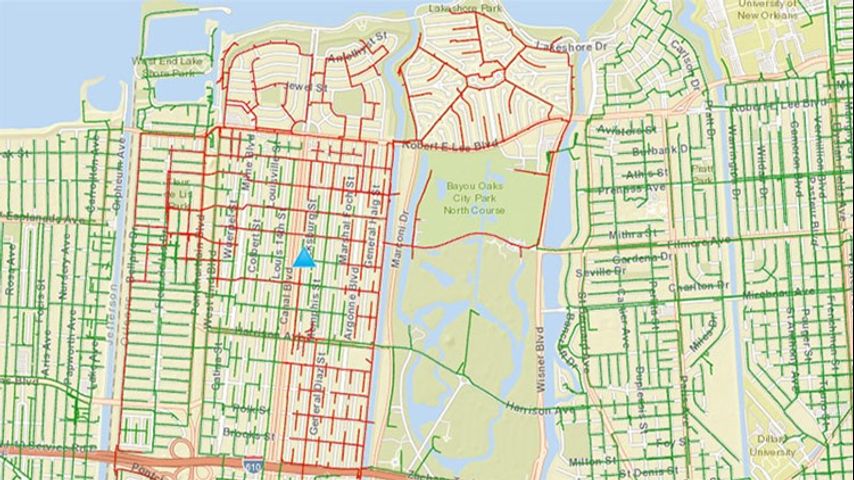 The outage area included the lakefront area from Wisner to West End Boulevard, a large section of City Park, and much of the area between Orleans Avenue and Canal Boulevard.