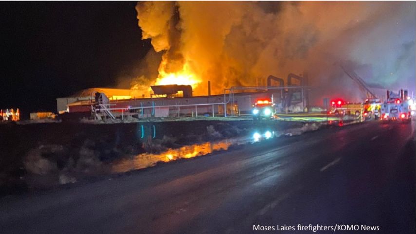 Local news outlet KOMO News says employees at the potato plant safely evacuated the fire, which started in the dehydrator and no injuries were reported.