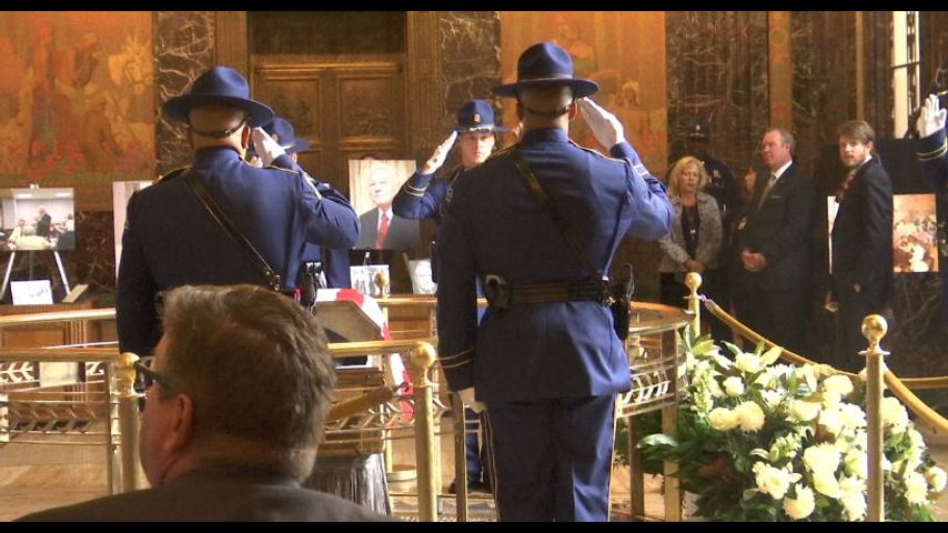 Inside the building, the rotunda was filled with family, state leaders and politicians of past and present.