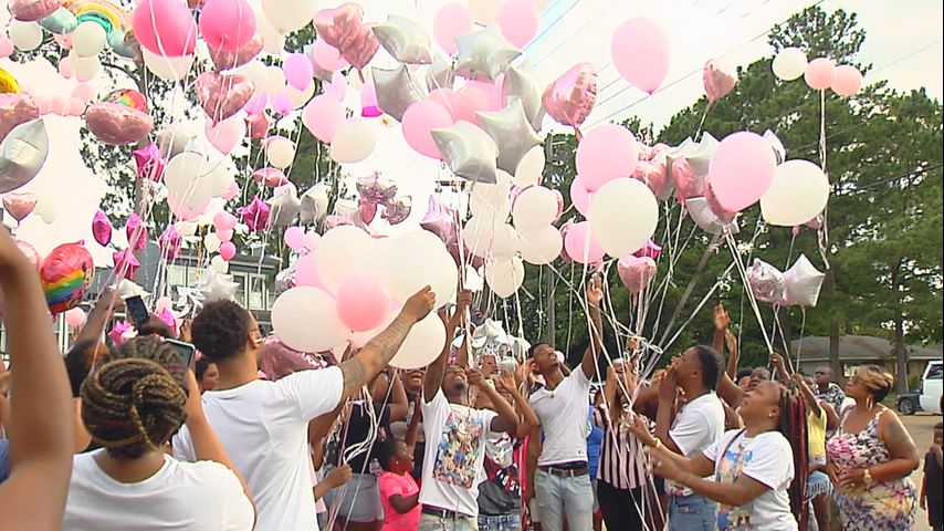"Mee Maw is going to love you always. I'm going to miss you baby girl and I'll carry you everywhere I go,” said Hope as they released those pink and white balloons shouting, “Forever Ja’tyri,” and “We love you.”