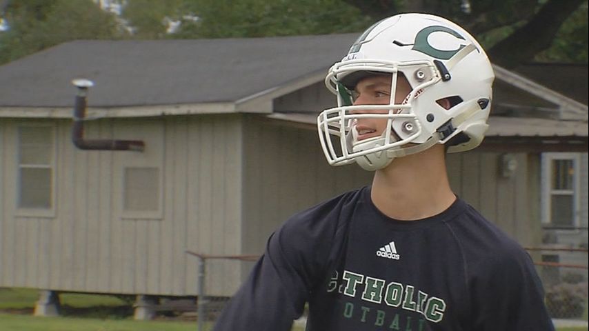 BATON ROUGE- Catholic High of Pointe Coupee quarterback Aiden Vosburg scored 2 touchdowns on the ground and 3 through the air on his way to a 273 yard performance.