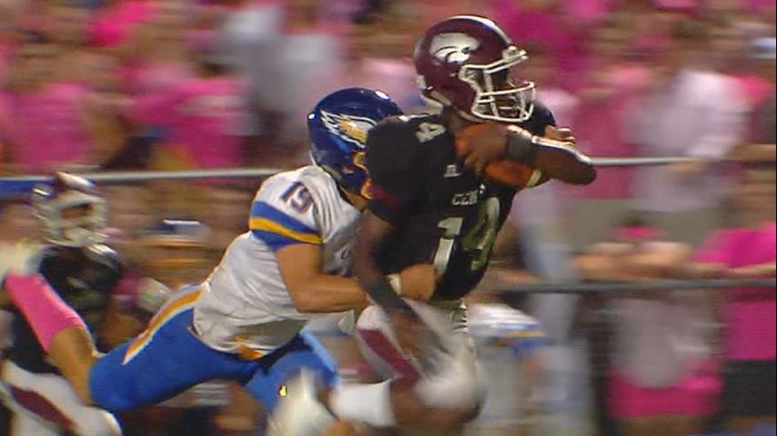 Central's Sam Kenerson racking up over 250 yards thru the air and on the ground with 4 scores, helping his Cats beat Live Oak 31-25.