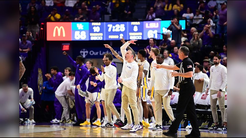 Fans storm court after LSU Men's Basketball beats Kentucky 75-74