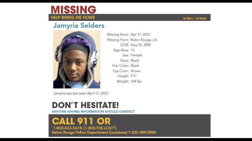 Anyone with information on her location is asked to call the National Center for Exploited and Missing Children at 800-843-5678 or Baton Rouge police at 225-389-2000.