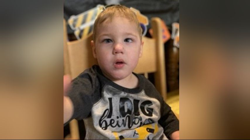 The child, identified as Carson Jeffery Hollingsworth, is a 2-year-old with blonde hair and blue eyes. He is approximately 24” - 30” tall and weighs about 24 pounds. He was last seen wearing a white t-shirt with the words “Chilling with my Cousins” and a white and purple Luvs brand diaper. He was not wearing socks or shoes when he was last seen.