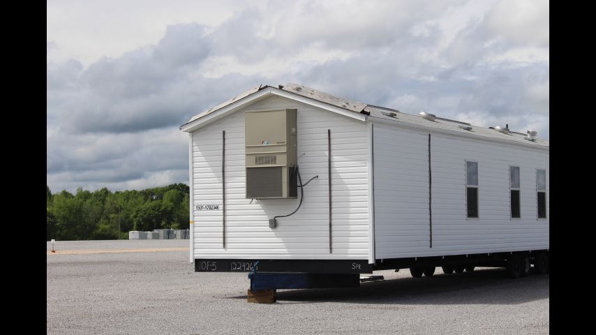 The mobile homes are being stored at a large piece of property off Choctaw. The homes will be trucked to sites when they are assigned.