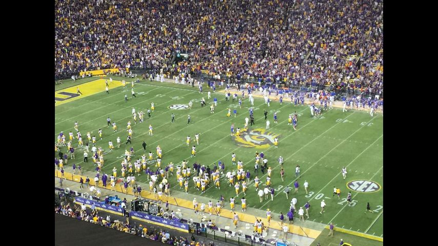 The Tiger’s tied the game in the second quarter. Star running back Leonard Fournette in the quarterback position, driving into the end zone.