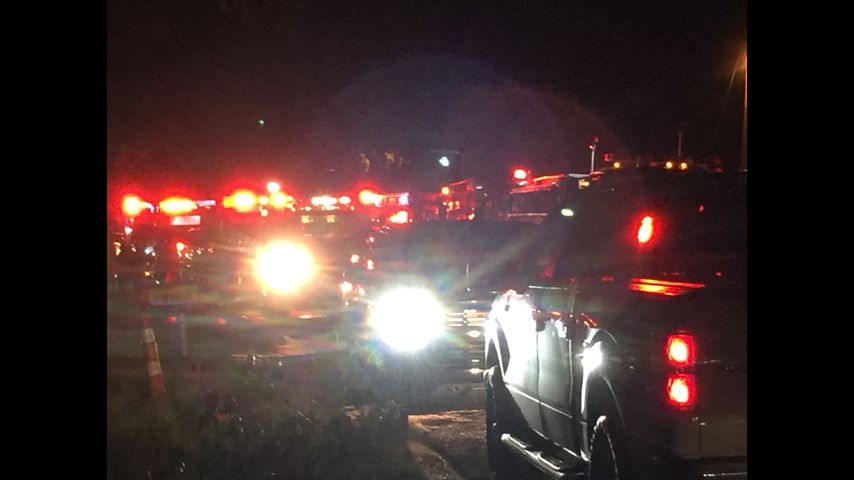 A firetruck reportedly crashed and rolled over on Perrilloux Road while responding to the fire. No injuries were reported, according to Fire District 4.